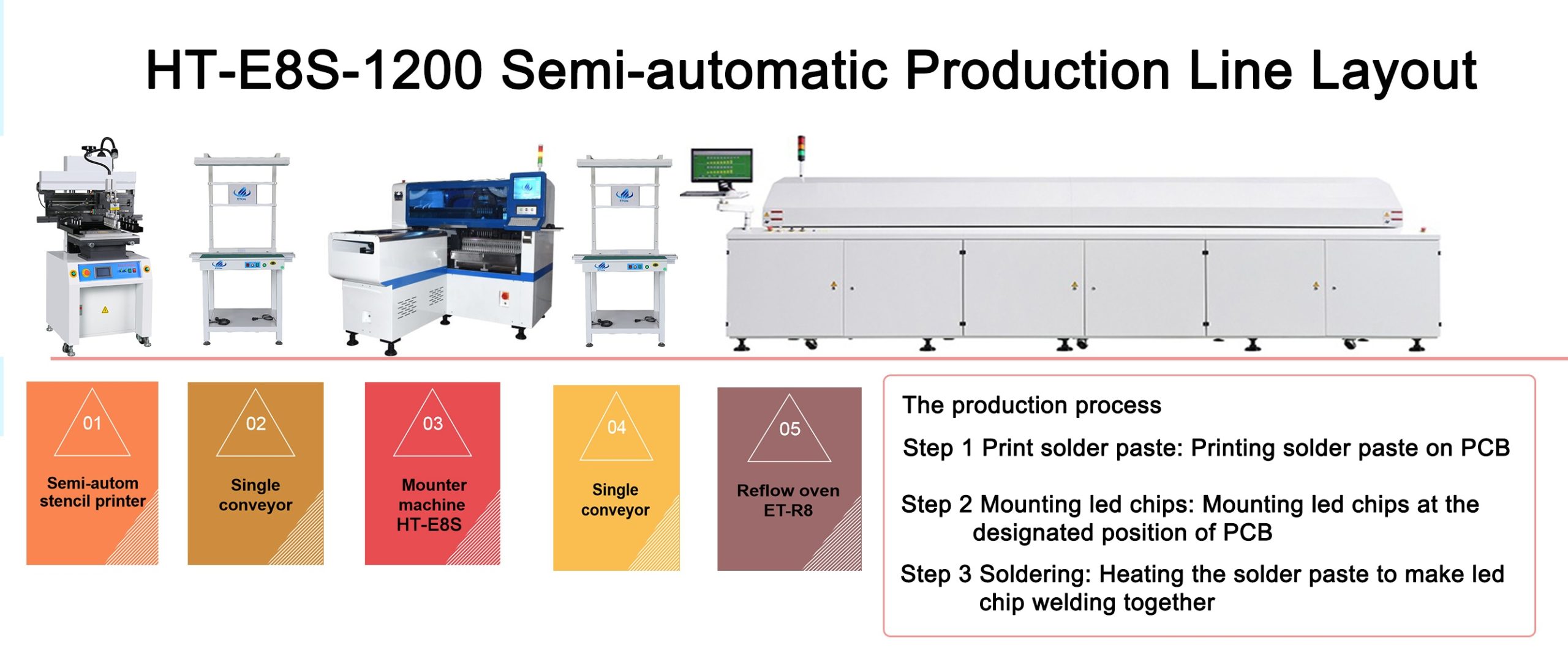 Mesin HT-E8S-1200 SMT Gunakan motor linear magnet tinggi terbaharu, kelajuan dan ketepatan adalah lebih baik daripada mesin biasa. Kelajuan pemasangan boleh mencapai 45000CPH, kapasiti sebenar adalah kira-kira 60 peratus daripada kapasiti optimum.